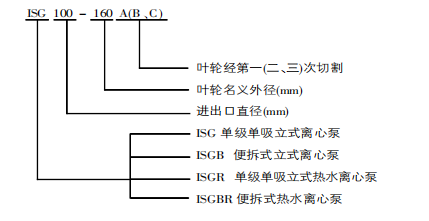 分基准型、A、B、C切割型等206个规格。根据输送的介质和温度的不同,设计制造同性能参数的ISGR、ISGF等系列泵,为方便用户安装、维护,我公司新型设计制造了深受广大用户欢迎的便拆式泵,即ISGB系列泵。